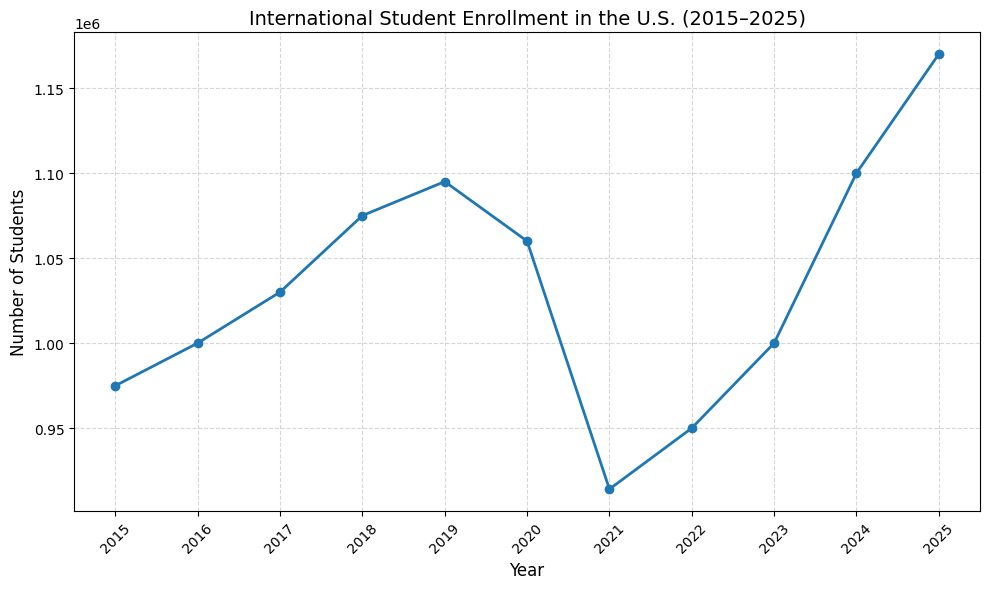 Graph: International Student Enrollment (2015-2025)