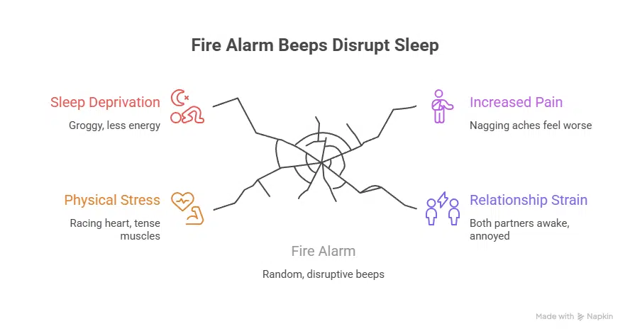 Those random fire alarm beeps mess with your whole body. Your heart races like you just ran a sprint. Adrenaline kicks in, even though there’s no real fire. Your muscles tense up. And if you have any nagging aches, they feel worse when you’re trying to settle back down.